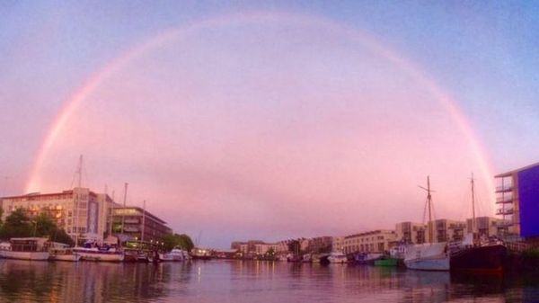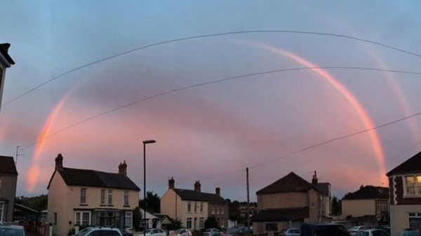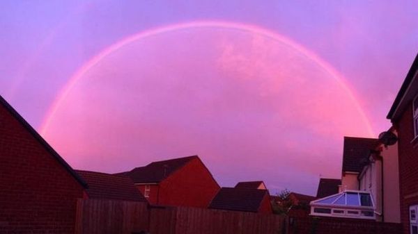 Вечер пошедшего понедельника для жителей британских городов Бристоля, Тонтона и Йейта стал поистине необычным, граничащим с фантастикой.В небе над этими населенными пунктами Англии появилась то ли радуга, то ли какое-то космическое явление, и этот таинственный розовый полукруг приковал внимание миллионов британцев, вышедших на улицу полюбоваться удивительным природным явлением.