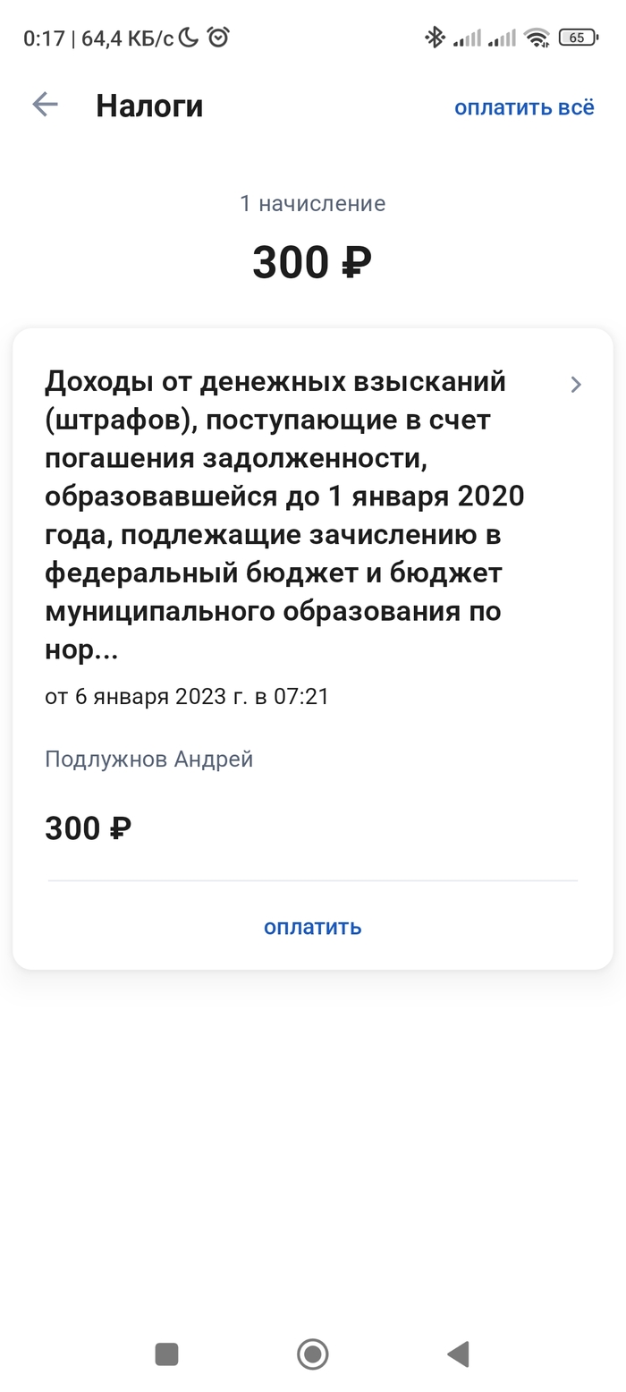 Что за говно?! Пошел я пешком в налоговую, показываю им это чудо, а они в отказ. Говорят, чист ты перед государством по нашему ведомству, нет на тебе сглаза, проклятий, а также налогов и начислений. Пошел я к судебным приставам, там тоже самое, не наши это 300 рублей, знать ничего не знаем. А мне обидно, что за фигня и сколько вообще оно будет появляться? Висит себе и висит, думаю, может хозяин объявится, напомнит, но нет, тишина. Сегодня с друзьями показал им еще раз этот фокус. Деньги списались, а долг на госуслугах нет, по прежнему висит окаянный