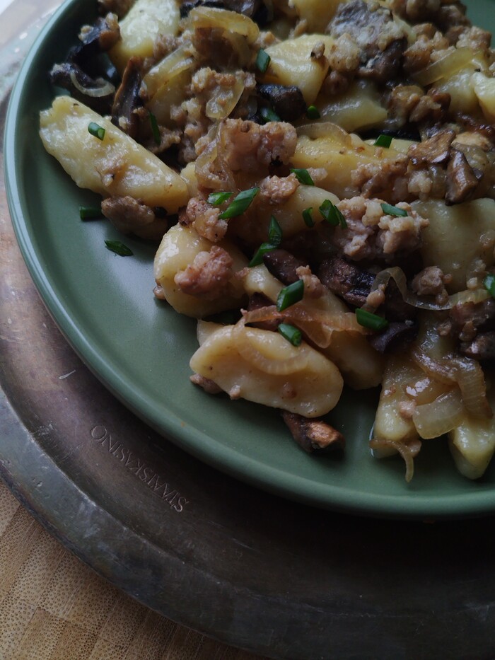 Каша из топора: картофельные ньокки с фаршем и грибами⁠⁠