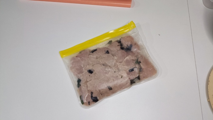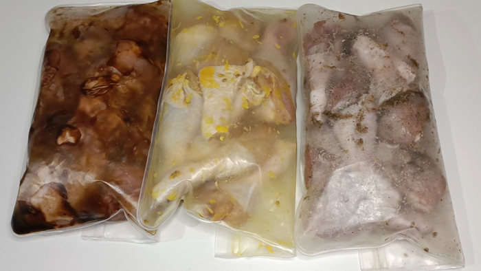 Также я мариную курицу в разных соусах, порционно раскладываю по зиплокам и замораживаю. Куриную грудку мариную и вакуумирую, так как готовлю ее в основном су-вид.