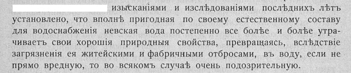 "Наступает открытие навигации, а вместе с ним и заражение Невы. В особенности надлежало бы обратить внимание на отравление, и весьма систематическое, Невской воды нефтью.