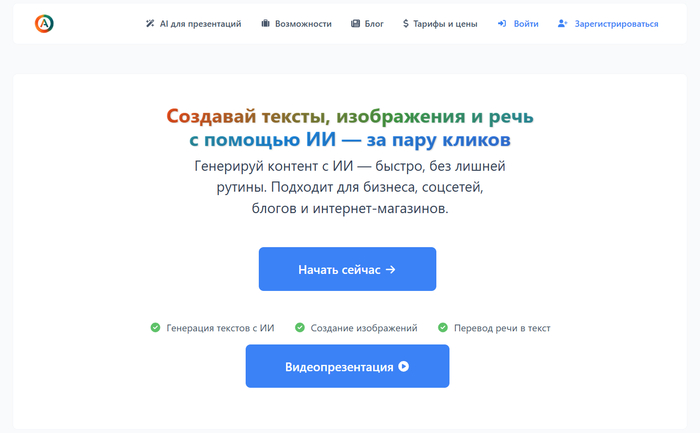 AI txt — это онлайн-инструмент на базе искусственного интеллекта для генерации текстов на русском языке. Она умеет создавать разнообразный контент: статьи, сочинения, посты, описания товаров и услуг в разных стилях, включая SEO-оптимизированные тексты.