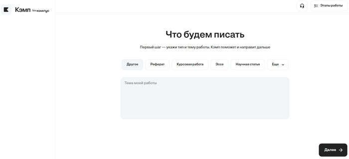 Кэмп — лучшая платформа с нейросетью, помогающей выстроить план, аргументацию и стиль текста, сохраняя академические стандарты.