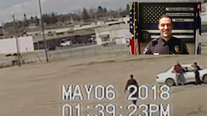 0-летний офицер Марк Адамс патрулировал район, когда заметил нарушение дорожного движения и попытался остановить белый Ниссан. Автомобиль остановился не сразу проехав 6 кварталов
