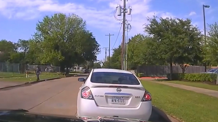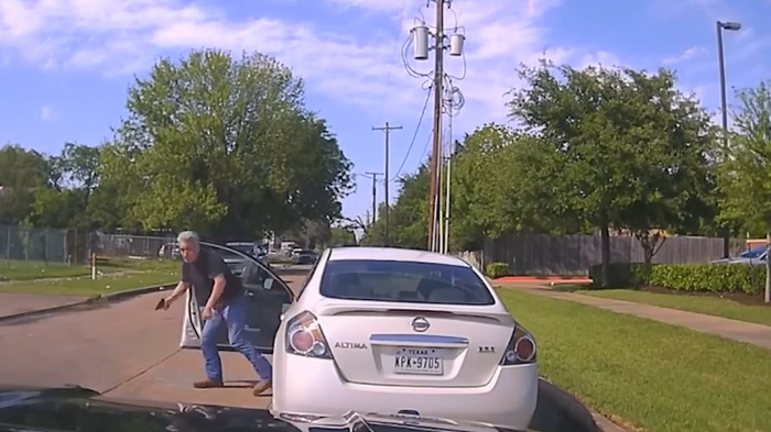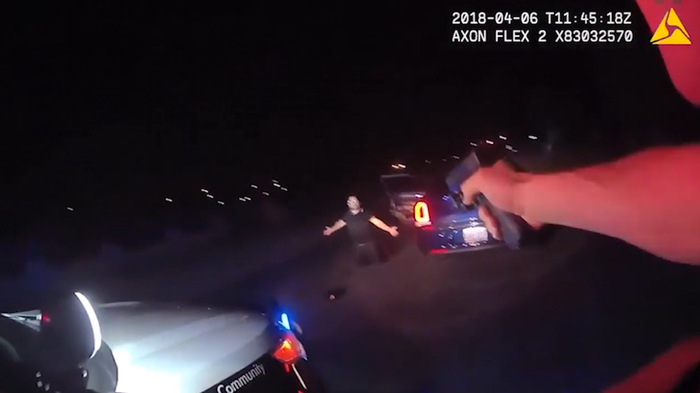 Водитель выходит со словами «Что я сделал?» позже опознан как Марко Антонио Сааведр. Офицер трижды говорит "оставайтесь в машине", а затем дважды "покажите свои руки"