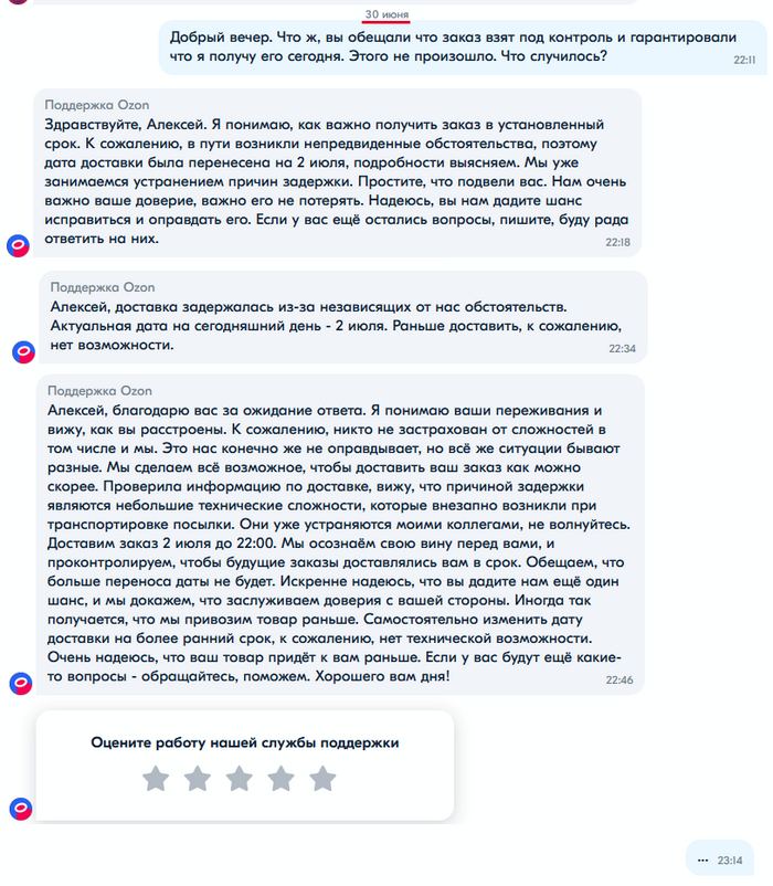 Заказал я тут доставку с Озона. Многое слышал про него и про качество доставки. Но все мы учимся только на своих ошибках. Интересно, кто им составляет тексты извинений, нейросеть?