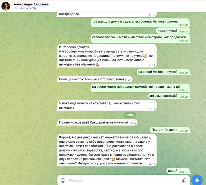 Пишет мне тут одна мадам. Мол, хочу выйти на МП и все такое. А сегодня прилетает следующее:
