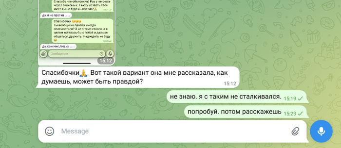 Далее шлет мне скрины переписки. Аж слезы. Ну покажу вам: