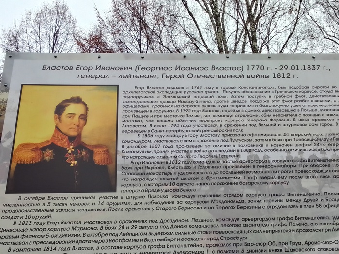 Ивановская область, село Егорий. Греческого сироту подобрали и обогрели русские, а потом он стал русским генералом, воевал против ебучего Наполеона, вышел в отставку, построил церковь и похоронен около неё.