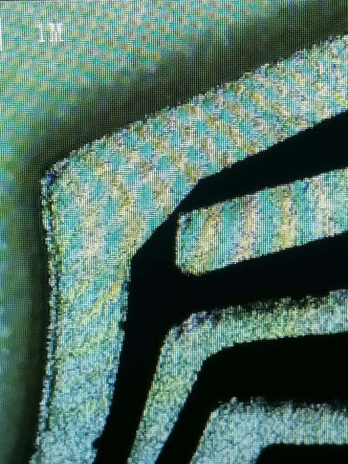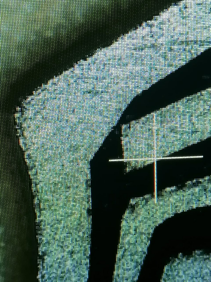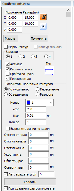 В настройках заливки ставлю шаг 0.01 мм, перекрестный способ и сплошную змейку (жесткий режим, но мне нужно понять, на какую глубину можно забуриться). Так как узких мест у меня на клише много, и во все нужно залезть, делаем поворот после каждого прохода 5 градусов. Создаю еще 2 слоя с углом поворота относительно предыдущего 30 градусов, а также слой чистки. По наитию и опыту буду делать 40 повторов сего непотребства, после чего будет проход сплошной чистки и полировки с шагом уже 0.005 мм (полируется только верхняя грань, так как в расфокусе режим полировки работает плохо. Но качество дна для клише нахрен не нужно). Мощность гравировки ставлю ~ 24 Вт (80% от номинальной), чистки мест гравировки 30%, сплошной чистки 20% (для полировки свои режимы и они тут не так важны).