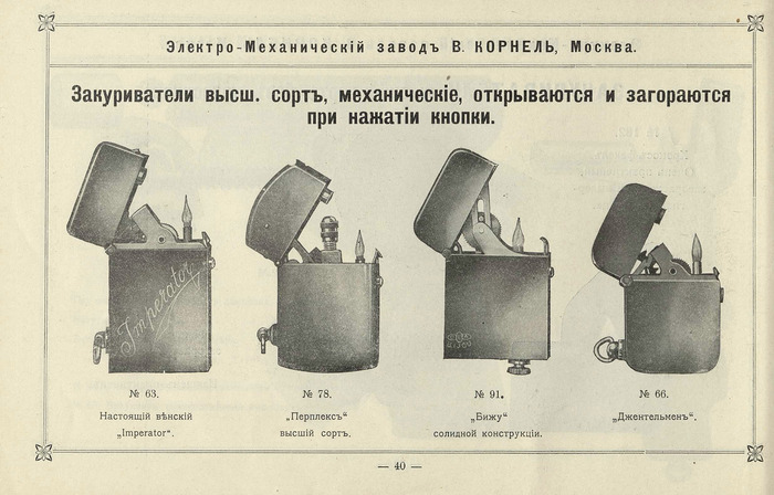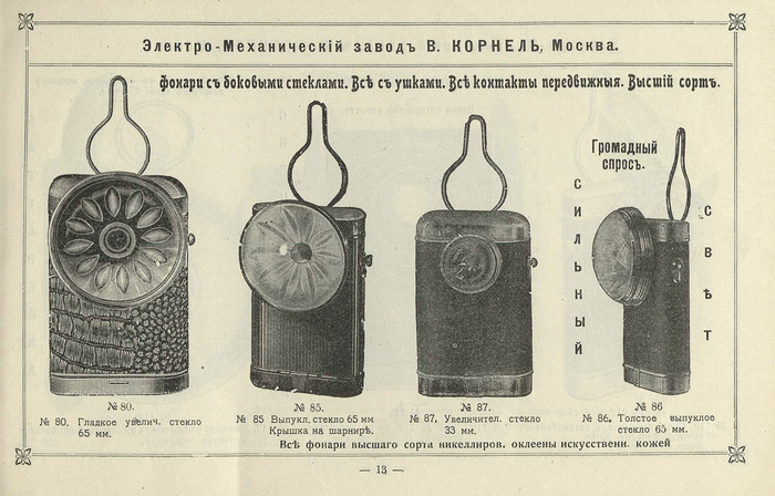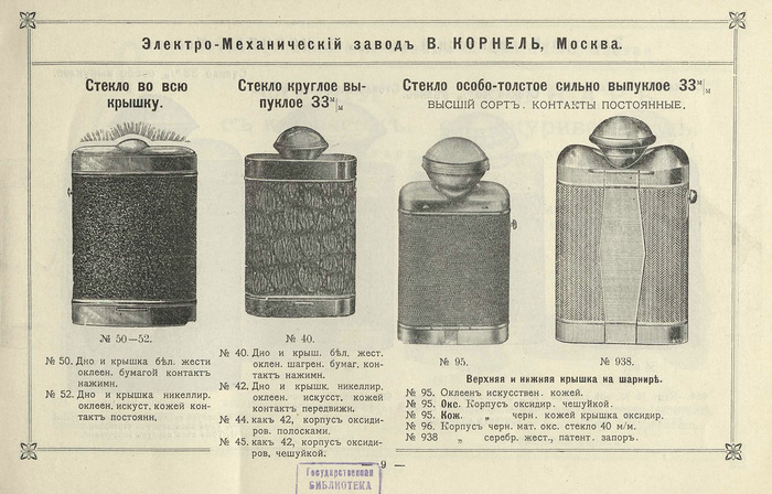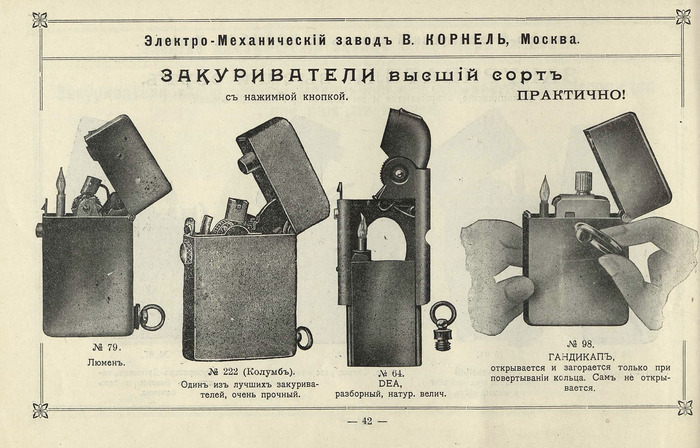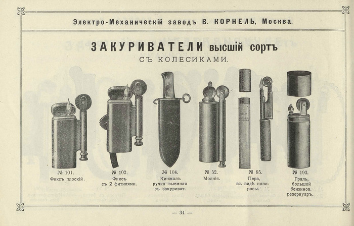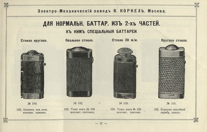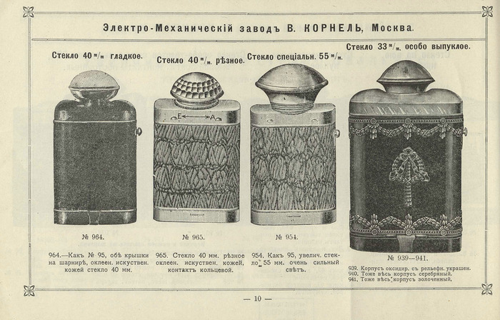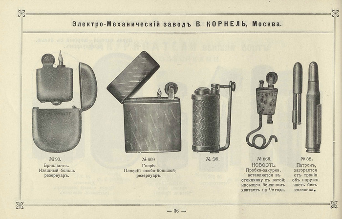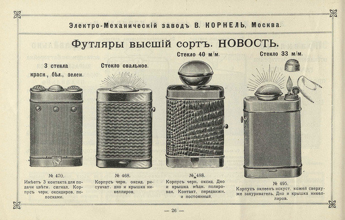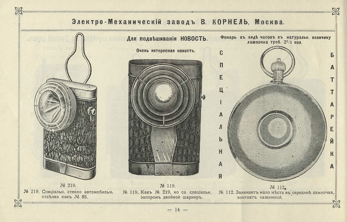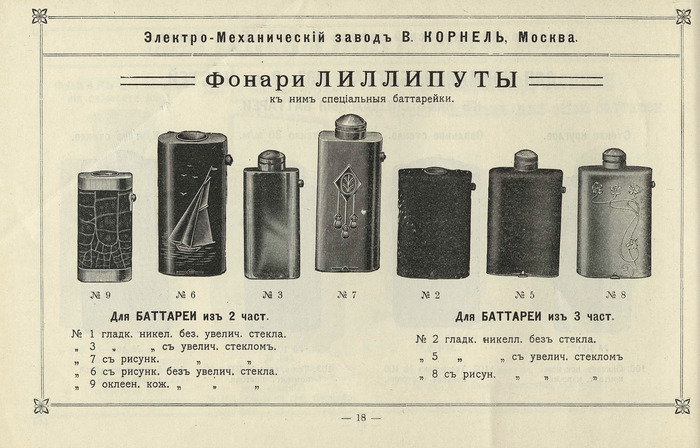 Прейскурант зажигалок, фонарей и пр. Электро-механический завод В. Корнель 1914 год⁠⁠