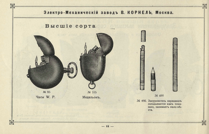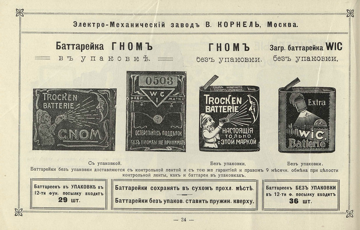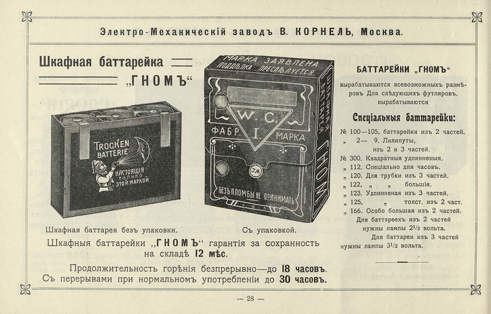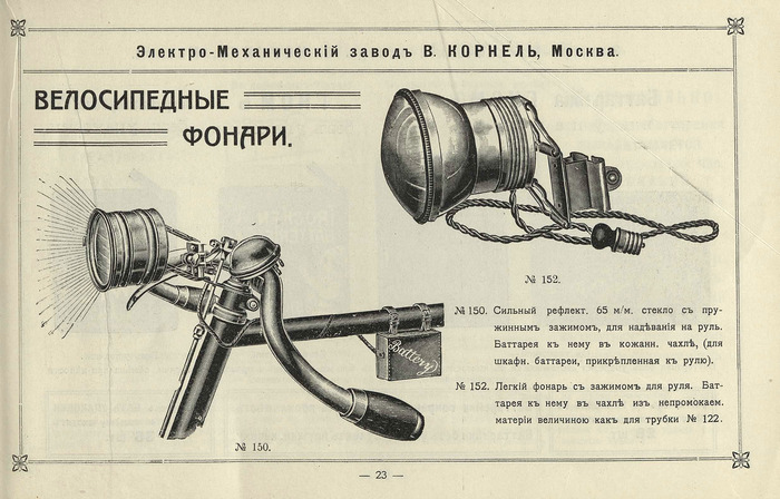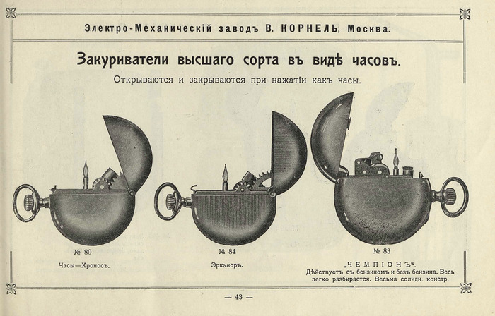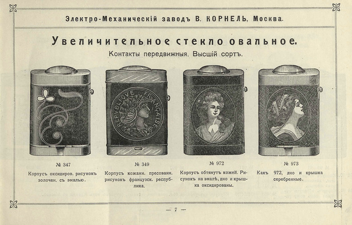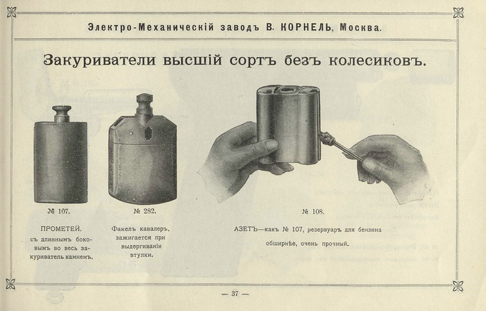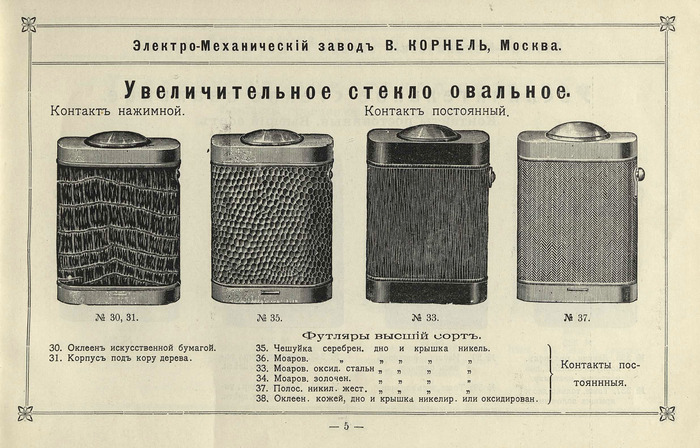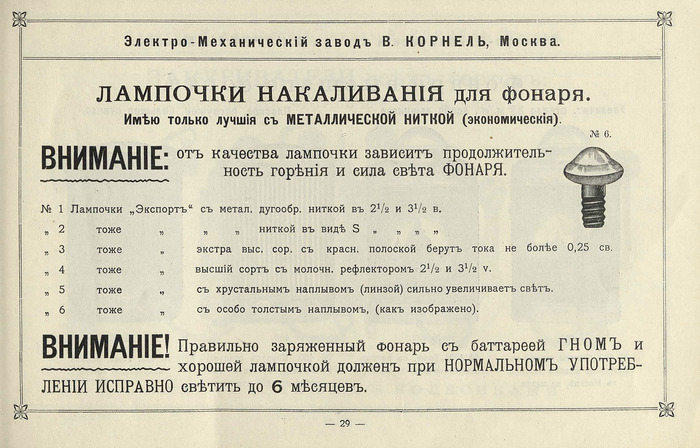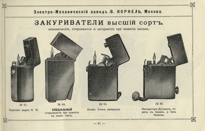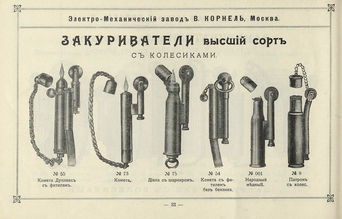 Прейскурант зажигалок, фонарей и пр. Электро-механический завод В. Корнель 1914 год⁠⁠