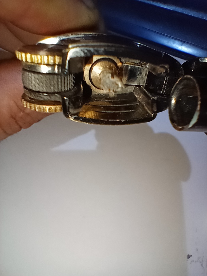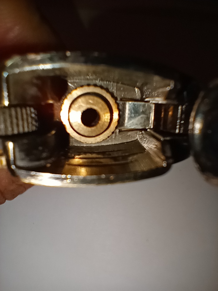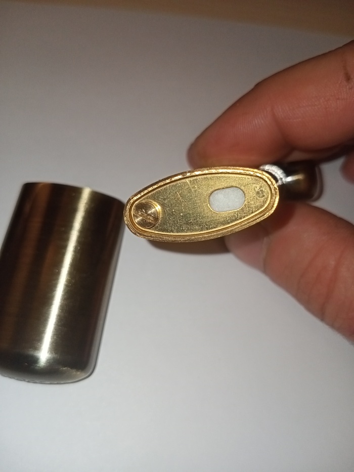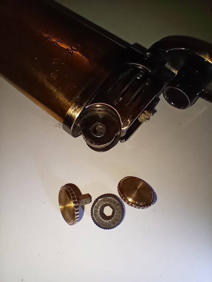 Как и в Zippo является одновременно и своеобразным крепежом лапки пружины верхней откидной крышки.но в отличии от Zippo это не клёпка а ввертыш на резьбе.