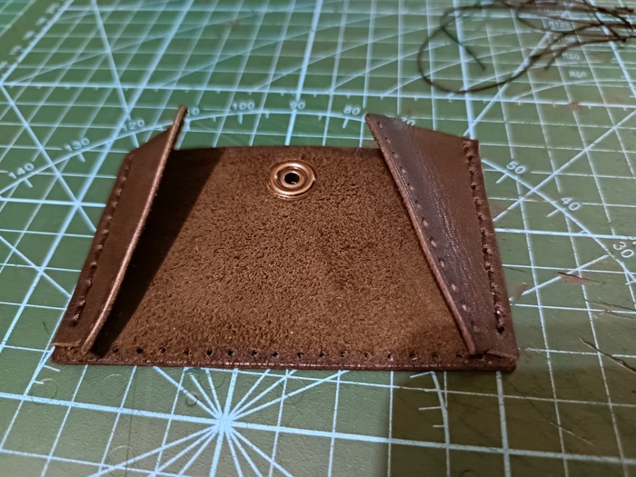 Это моя вторая работа по своей собственной выкройке. Суть хотелок следующая: что-то максимально компактное, чтобы носить с собой банковскую карту, скидочную с заправки и купюры (хотя ими нынче редко пользуешься). Вроде было просто, но не совсем.