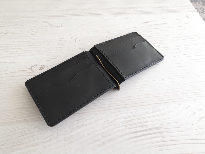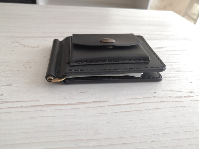 Доброго времени суток. Выкладываю на расстерзание очередное изделие. Зажим имеет 4 отделения под карточки, за которыми есть еще 2 отделения.