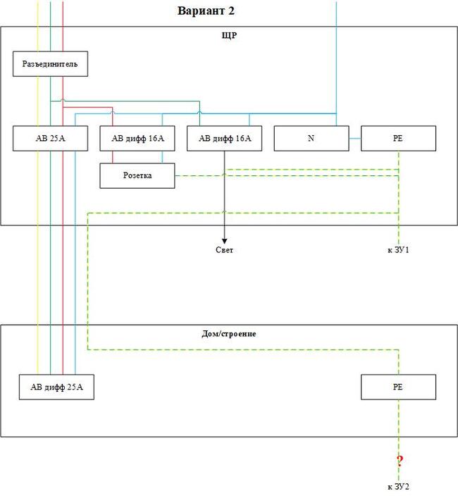 3. Если вдруг вариант 2 правильные требуется ли повторно землить шину в доме (подключение к ЗУ2)?