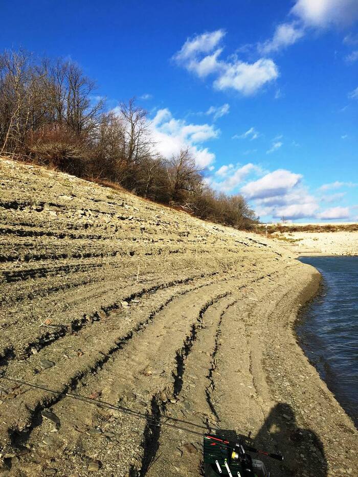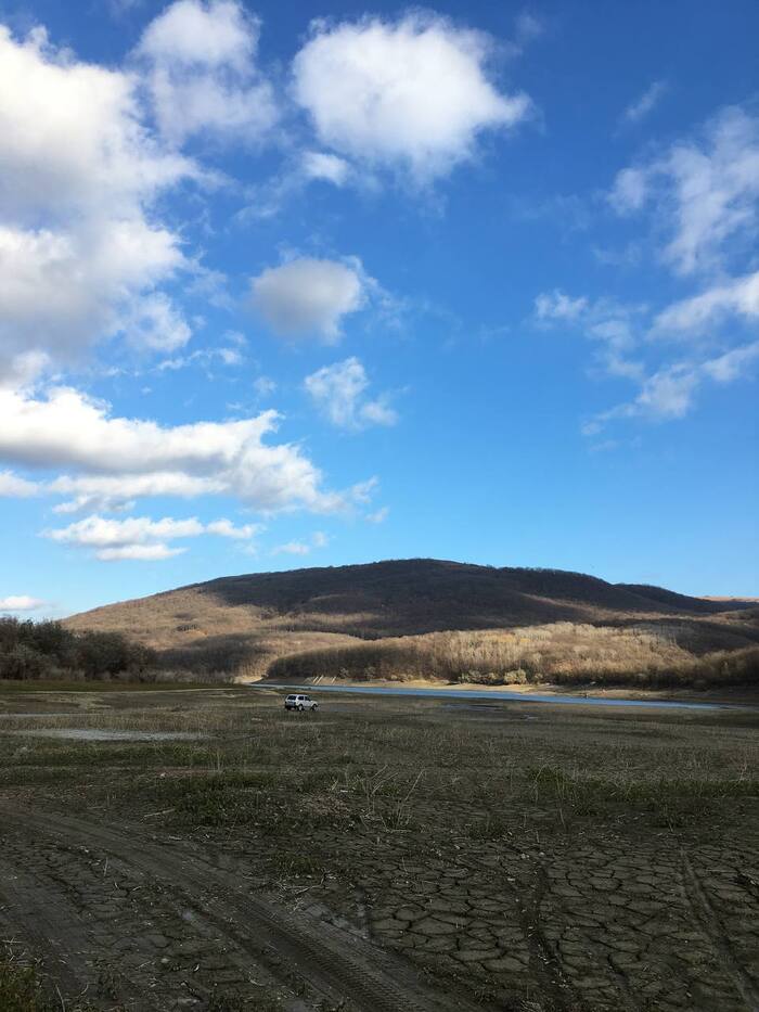 Традиционно обмелевшее осенью Неберджаевское водохранилище.