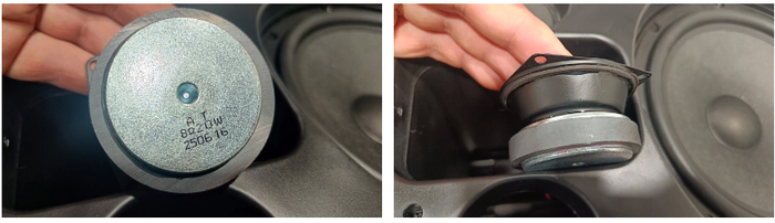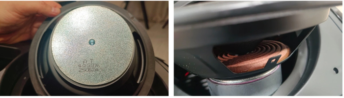 В колонке используется 2 динамика диаметром 64 мм. Это высокочастотники с сопративлением 8 Ом и мощностью по 20 Вт. каждый. Подвесы резиновые.