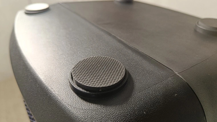 А на нижней части массивные резиновые ножки. Именно они спасают и гасят вибрацию, которая передается во время активных басов.