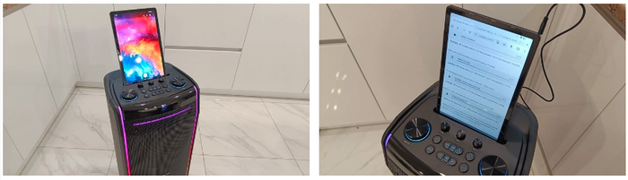 Небольшой желобок на верхней части я использую под установку планшета или смартфона. Так можно и видосики крутить или видеоролики от известных авторов. На самом деле, с большого экрана проще выбирать музыкальные композиции.