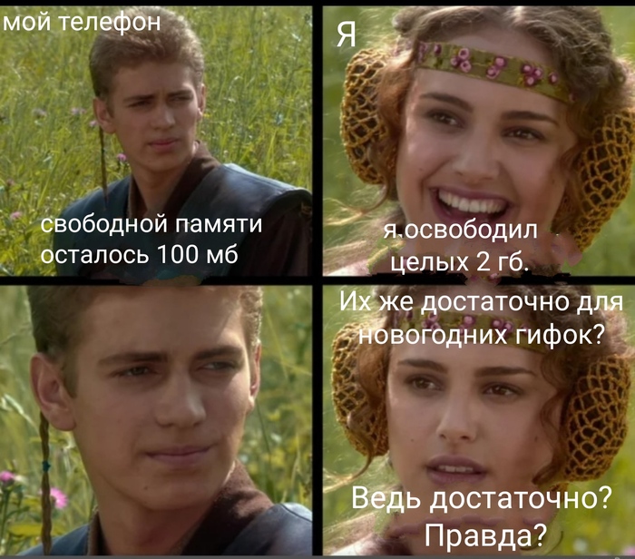 2 Ya1takoi Хлынули поздравления в мессенджеры 3 года назад Мем без надписей не нашел, что было затёр и написал свои. Возможно повтор, сильно не пинайте.Всех с наступающим и наступившим! Мемы Телефон Память Заканчивается Ещё 0