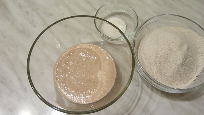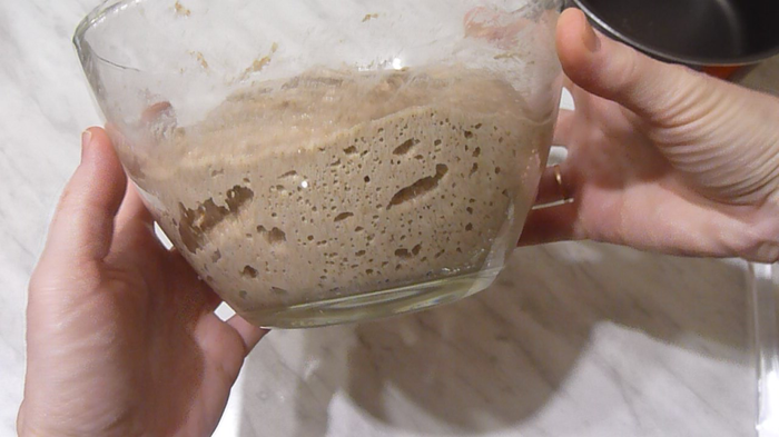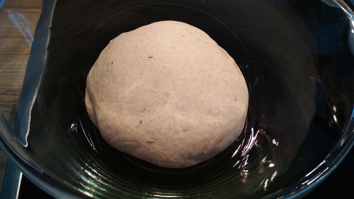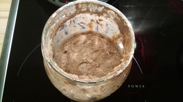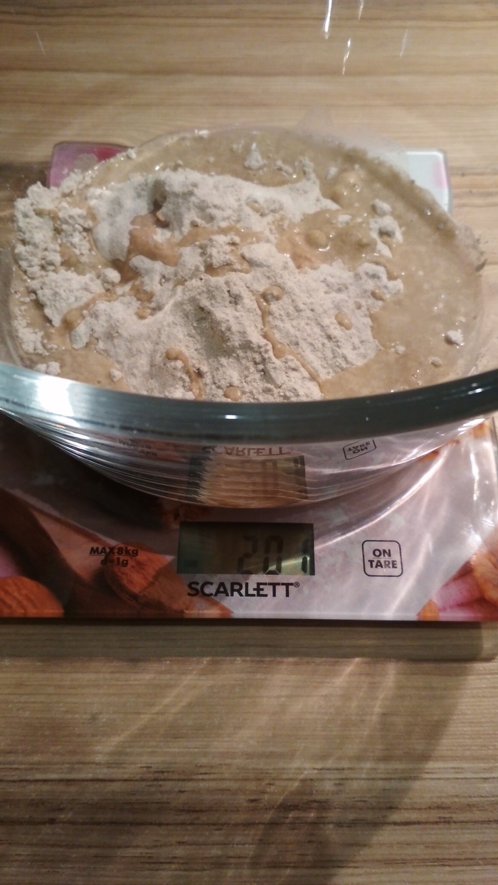 + к ней дополнение. С вечера надо замочить 250 гр ржаных хлопьев, так чтобы они полностью смочились водой, и накрыть их крышкой. Перед замесом теста, остатки воды надо слить.