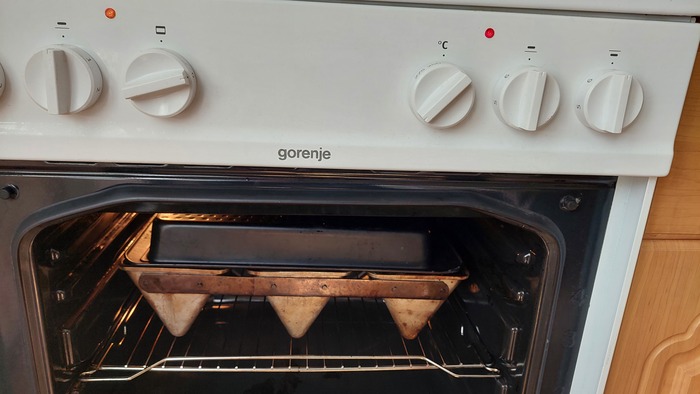 Вынимаем первую порцию, кладем остывать на решетку под полотенце. В это время увеличиваем температуру духовки снова до 240 г, даем несколько минут разогреться.