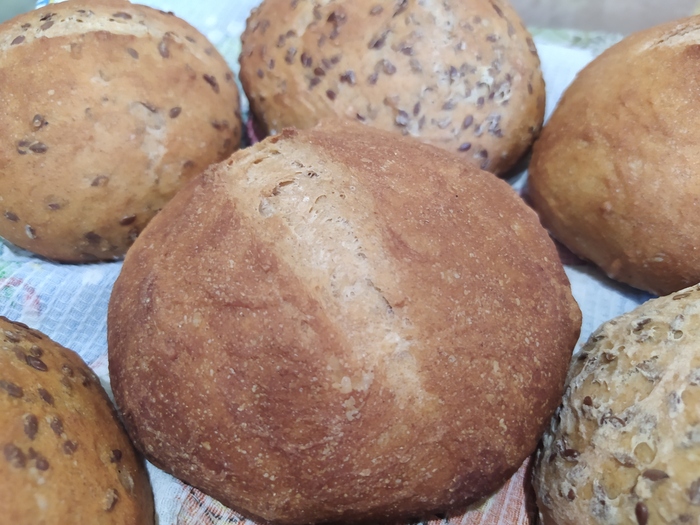 Выпекаю минут 10 на температуре 240, чтоб, корочка схватилась, потом открываю на минутку духовку, снижаю температуру до 220 и выпекаю еще минут 25, если маленькие булочки, если большие добавляю еще 10-15 минут, смотрю по хлебу. Готовый хлеб должен звучать, как барабанчик, если по нему постучать.