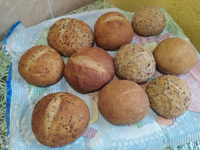 Время расстойки тоже разное от получаса до часа, опять-таки зависит от температуры в кухне. Сразу же включаю духовку на 240 градусов, чтобы она хорошо разогрелась к первой партии хлебов. В первую партию отправляю те колобки, что получились поменьше, как раз пока они испекутся, колобки побольше хорошо поднимутся.