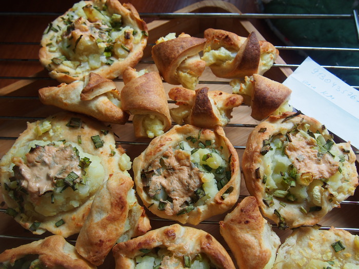 Даем побродить 30 мин, формы смазываем маргарином и посыпаем мукой.