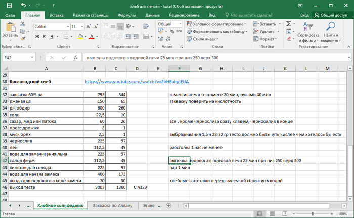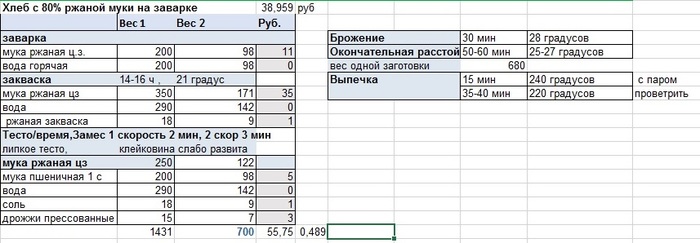 Этот хлеб мне нравится тем, что он довольно быстро подходит. Утром надо всего 2,5 часа чтобы его испечь. На картинке - раскладка продуктов. Рецепт взят из книги Дж. Хамельмана.