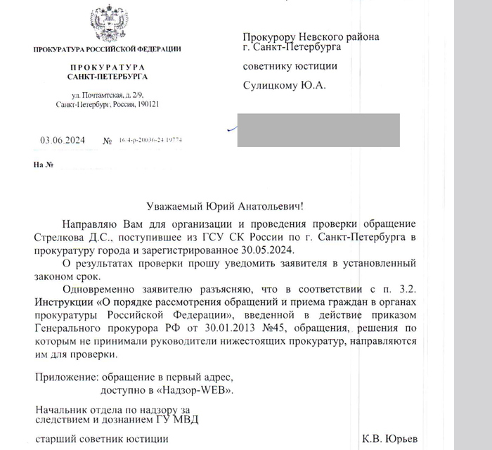 Подождав еще две недели, в середине марта я нанял юриста по уголовке в данной сфере, и мы написали в прокуратуру, которая постановила возбудить уголовное дело, но полиция опять этого не сделала, поменяла следователя и закрыла дело. В конце апреля я повторно написал в прокуратуру и следственный комитет, на данный момент 24 мая дело по СК передали в управление СК Санкт-Петербурга и 3 июня руководству Прокуратуры Невского района.