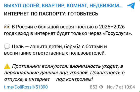 В Сети пишут, что россиян якобы обяжут входить в интернет по паспорту и через «Госуслуги» уже в 2026 году. Утверждается, что это необходимо для фильтрации контента пользователей, чтобы обезопасить детей от «взрослых» материалов и усилить борьбу с мошенниками.