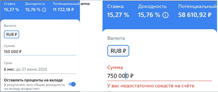 А вот теперь самый (для меня) трудновычисляемый момент: во что превратились 10 взносов по 150 тыс к тридцать второму месяцу. Наверняка есть калькуляторы вкладов со сложными процентами. Но я не пользовался и не ориентируюсь. Я потыкал сейчас у себя в банке предложения по вкладам, нашел какого-то динозавра под 15%, вижу доходность за полгода.