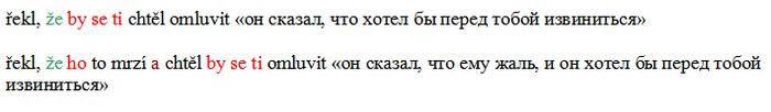 Далее, нужно знать, после каких слов в чешском можно ставить энклитики, а после каких нельзя. Если мы говорим о союзах, то после že «что» энклитики ставятся, а после ale «но» и a «и» – нет. Например:
