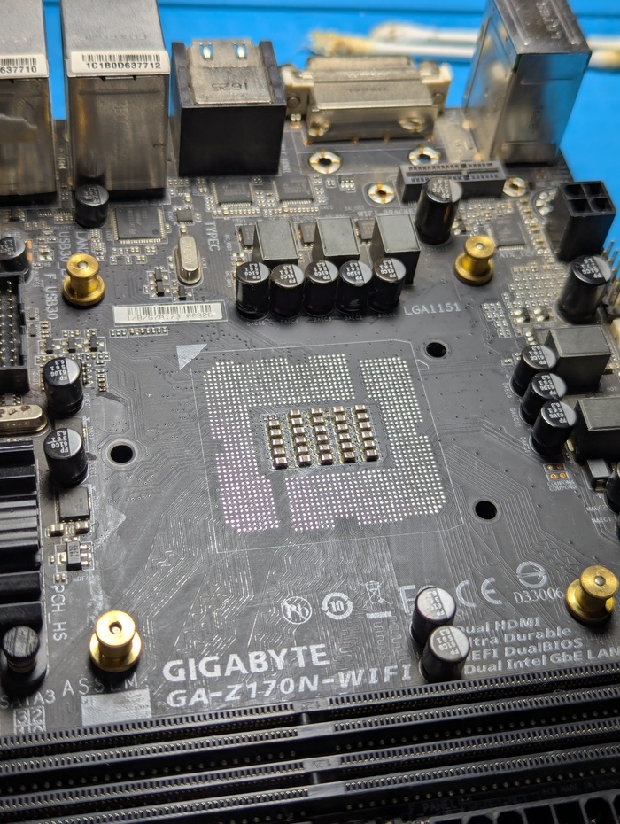 Итак, купил нерабочую мать с погнутыми ножками сокета (около 30шт) и двумя обломанными. Решил не заморачиваться с восстановлением ножек а просто купить новый сокет и заменить. Поехали.