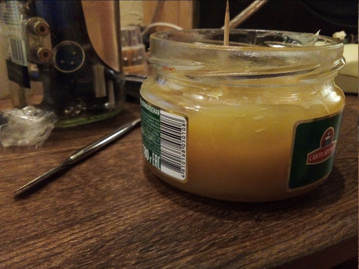 в общем пробовал бадяжить конифоль спиртом,но спирт быстро испаряется и канифоль выпадает в осадок,и сама смесь сильно липкая выходит.Как то попался рецепт как сделать вот на подобе такого флюс геля,только покупной стоит 370 рублей за 5 грамм