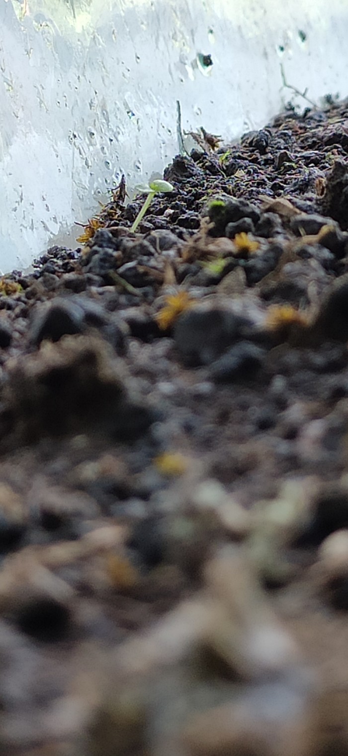 Список жертв: клевер, неопознанное из первой троицы(из них остался только портулак), растение в левом нижнем углу, все ростки.