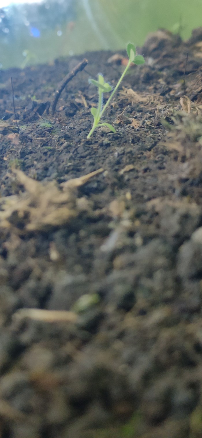 Маленькие медленнорастущие ростки оказались по-видимому мхом, один из центральных - клевером.