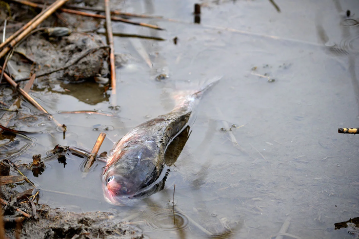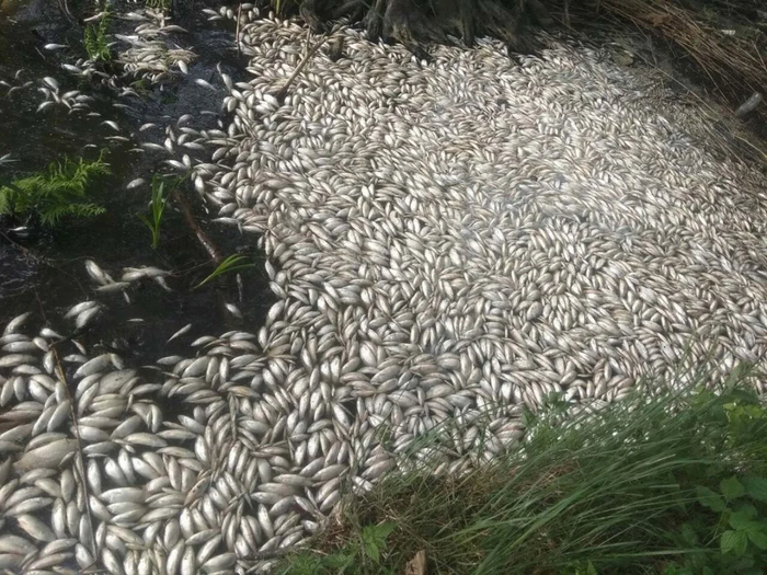 В результате погибают рыбы и другие обитатели рек и озер, сокращается численность поголовья многих пресноводных подводных жителей.