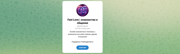 🩷 Fast Love (Telegram-бот) – быстрый сервис, который помогает познакомиться с иностранцем без регистрации и лишних действий прямо в Telegram, выдавая подходящие профили по странам и городам.