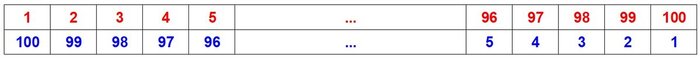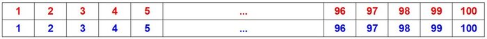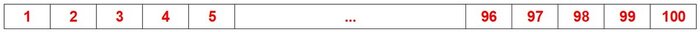 Представим себе числа от 1 до 100 в виде бумажных карточек, и разложим их в ряд: