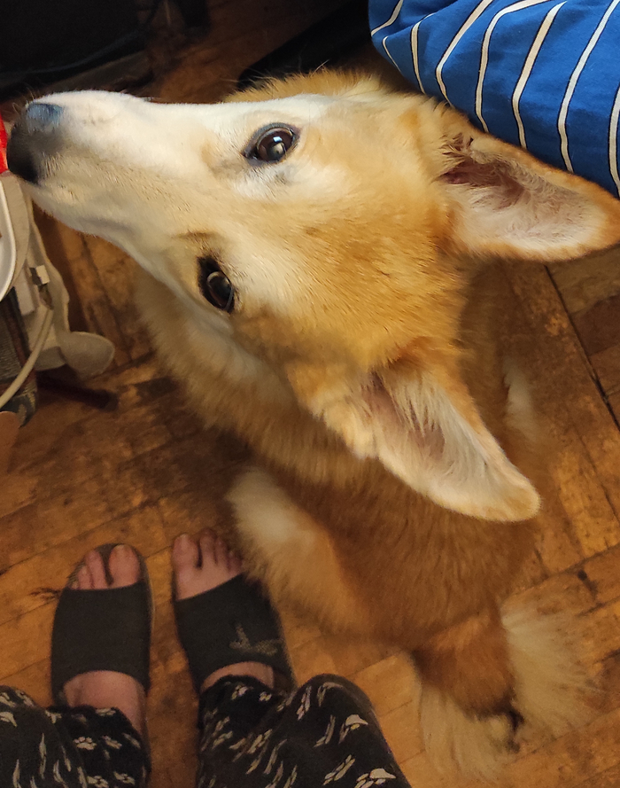 Псу около 9 лет, 4 из которых он прожил в вольере на улице. Не знаю, что мной руководило, когда я решила взять его в квартиру, но когда я увидела его на фото, уже не смогла удержаться. Когда он первый раз оказался в большом городе (мы живём в СПб), у него случилась паника. Машины, трамваи, грузовики. Все это вызывало жуткий страх. Посмотрев на собаку, которая металась из стороны в сторону, я поняла, что я вляпалась. Но, к счастью, страхи мои оказались ошибочны. Пёс довольно быстро адаптировался к жизни в большом городе. И даже успел потеряться и ждал нас на месте, где потерялся. У меня до него жил хаски. Красивый, глаз не отвести! Как в фильмах. Но упрямая, злобная зараза. Все годы жизни с ним были адом. Поэтому я очень долго не решалась на собаку, только брала передержки. Первым моим опасением было то, что пёс из приюта может грызть и портить вещи, писать в квартире, скулить и быть агрессивным. Я думала, что он как мой хаски, будет вечно выть под дверью, если его закрыть в комнате. Но, это удивительно. Пёс пришел в квартиру, обнюхал все, я постелила ему коврик в коридоре и он тут же на него лег. То, что это его место, он выучил сразу же. Это был первый плюс. Потом я заметила, что он ничего не грызет кроме вкусняшек, которые я ему покупаю. Это и плюс и минус. Игрушки игнорирует, поиграть с ним не получится. По вечерам он уходит спать на свое место в коридор и я спокойно закрываю дверь в спальню. Утром открываю дверь, он встаёт со своего места и бежит нас приветствовать. Идеально! Под дверью не воет. Можно спокойно оставить его на даче, в сарае, в комнате, в кухне и уйти. У него включается режим сна. Охраняет территорию, квартиру, дом. Сам как-то понял, где и что является нашей собственностью. Понимает своих и чужих. Но ненавидит других собак. Никаких кроме корги. Коржиков очень любит :)