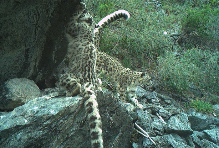Фотоловушки запечатлели моменты беззаботного веселья молодых ирбисов. Несмотря на то, что подрастающие котята почти достигли взрослых размеров, их игривое настроение остаётся неуёмным: они то затаятся в засаде, чтобы неожиданно наброситься друг на друга, то с азартом пустятся вдогонку, то с любопытством проверяют на прочность молчаливого свидетеля их жизни – фоторегистратор. Наблюдать за барсиной вознёй одно наслаждение, а их синхронные движения во время степенной прогулки вызывают умиление.