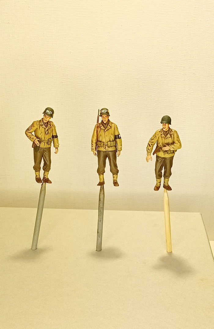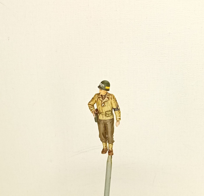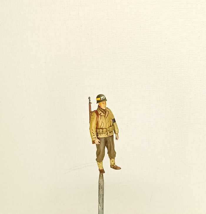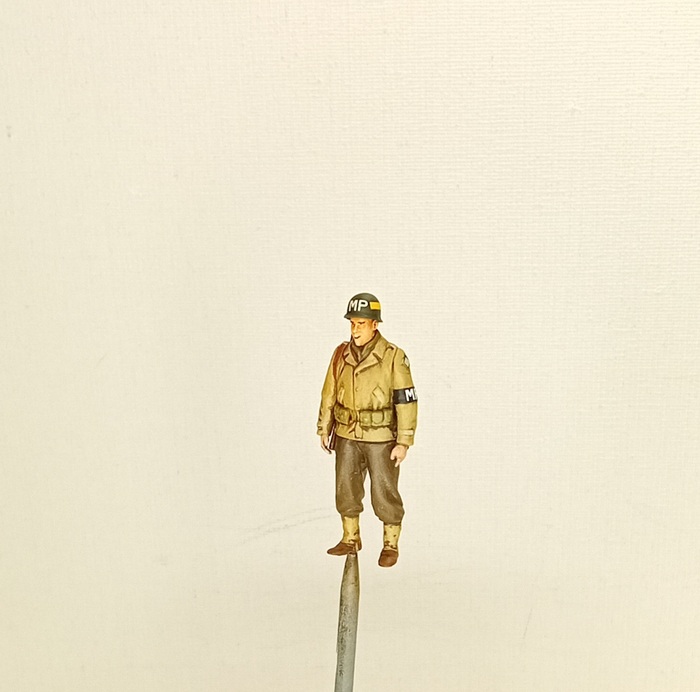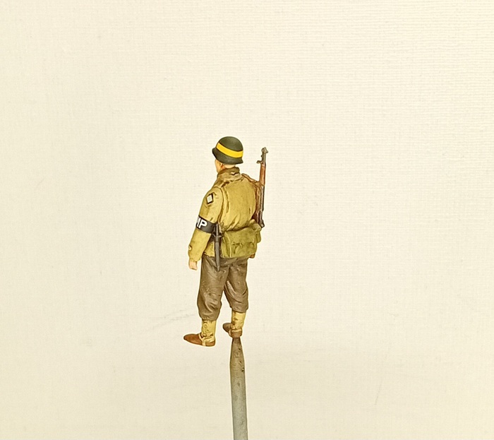 Сегодня я подвожу итоги и выкладываю снимки уже готовой работы. Я напомню, что диорама посвящена событиям на Западном фронте в 1945 году, в самом конце войны. Союзные войска продвигаются по территории Рейха редко встречая организованное сопротивление. Вот и в сюжете диорамы заметно, что в городке, через который проходят английские войска, уже нет сопротивления, а гражданские стараются проводить денацификацию улиц с помощью кисти и краски. Война и нацизм им уже надоели.