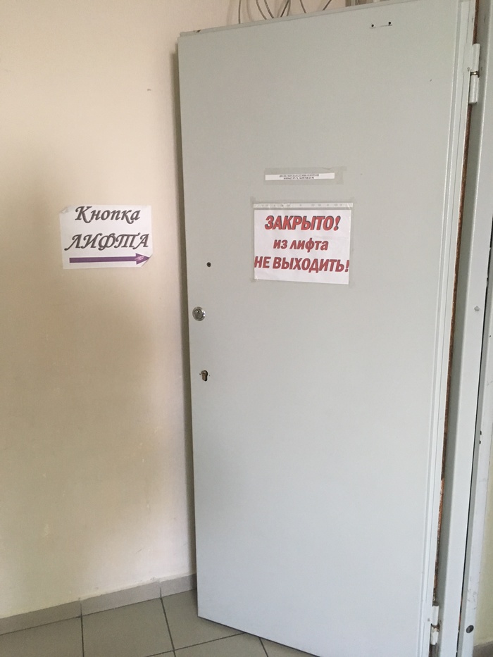 Суть в следующем: если дверь закрыта, то доехав до 6 этажа и выйдя из лифта (место между дверью и лифтом позволяет) вы оказываетесь заперты в узком пространстве без возможности самостоятельно выбраться, потому что кнопка вызова лифта находится за дверью. Связь там практически не ловит.