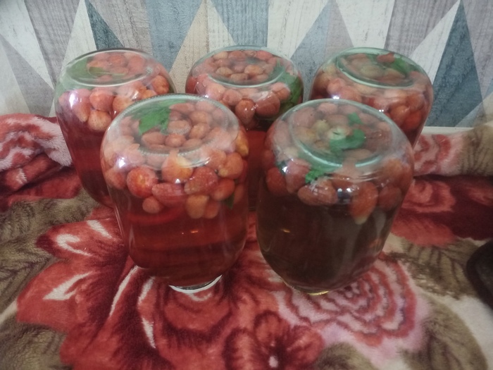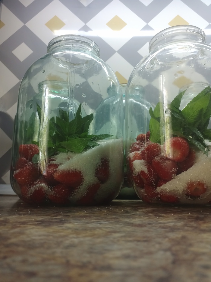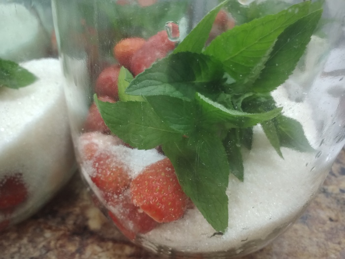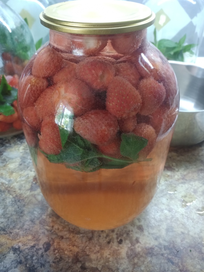 В прошлом году сделали часть клубничного компота с мятой . Зимой всем "зашло" .