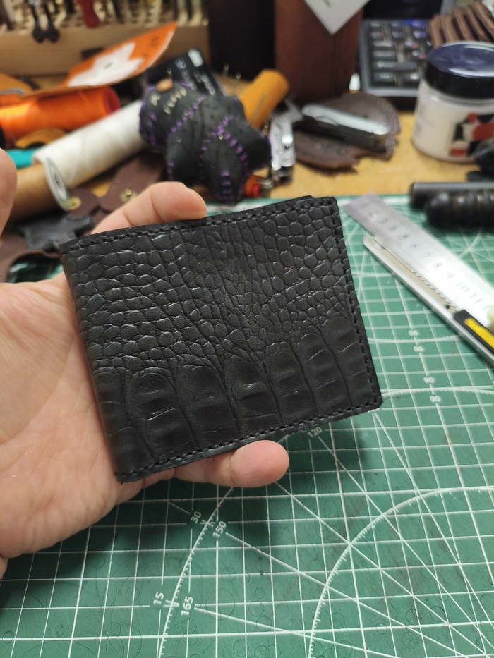 Свою вину, конечно, признаю. Глупо отрицать, что мы ни в чём не виноваты. К сожалению такие ситуации у нас случаются, бывает, что и шьём не быстро и работы не всегда идеальные (хотя кошелёк под заказ сшит хорошо, он просто не подошёл под размеры). Как и обещал, заказанное изделие мы сшили заново, сделав его пошире, надеюсь, в этот раз кошелек подойдёт под размеры.
