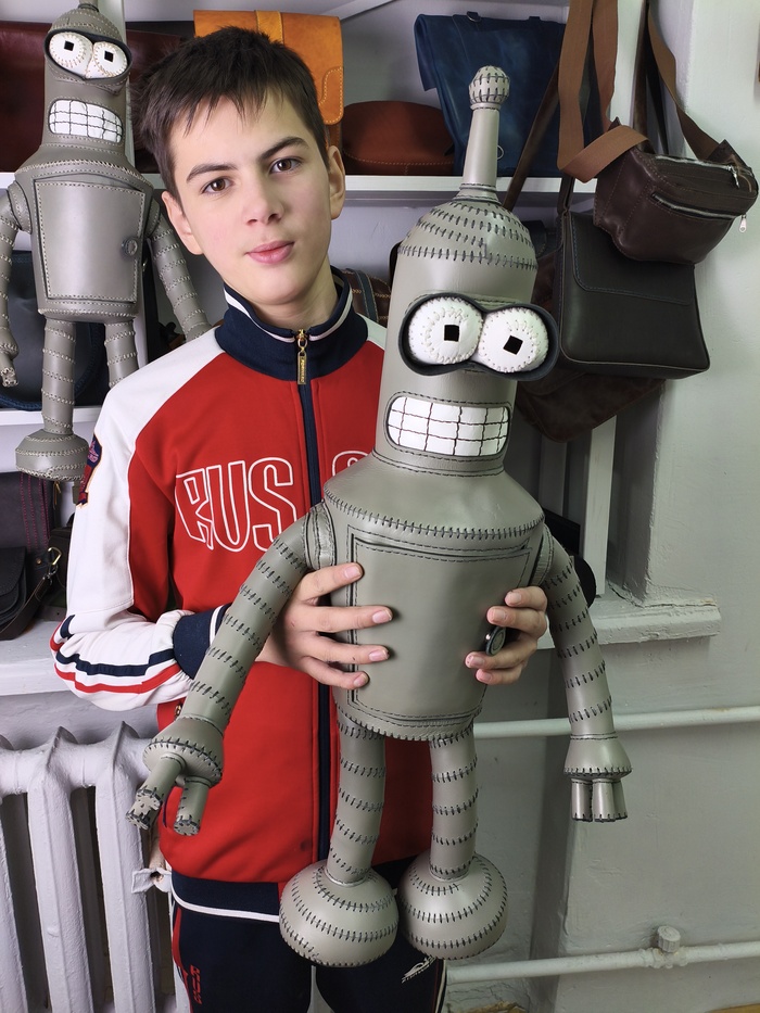 А парни шили разное. Кирилл снова изготовил Бендера.