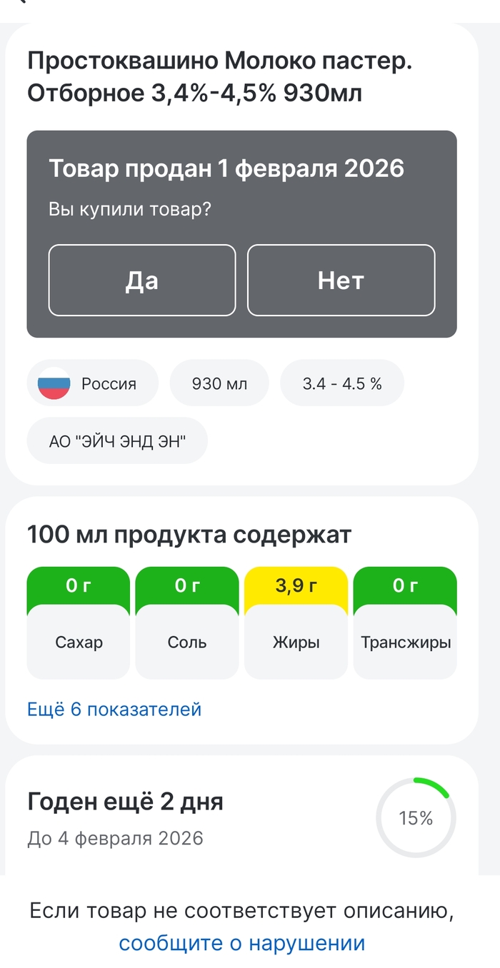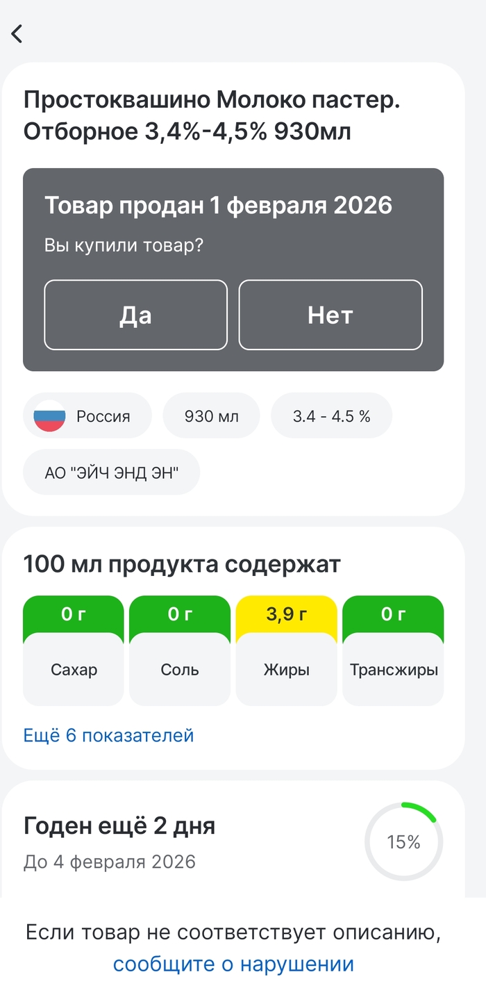 Скриншоты карточки товара, продукта со сроком годности и артикула прилагаю